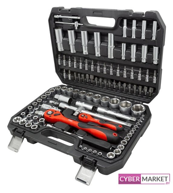 | Комплектация | Посадочный квадрат:1/2,1/4.Тип головок: 6 гранные, Е-профиль, короткие,глубокие.Комплектация: головки 1/4короткие:4, 4.5, 5, 5.5, 6-14 мм; головки 1/4глубокие: 6,7,8,9,10,1113 мм; головки 1/4Е-профиль короткие :Е4- Е8; головки-биты 1/4HEX:3- 6 мм; головки-биты 1/4TORX: T8,T10,T15,T20,T25,Т27,T30; головки-биты 1/4SL: 4, 5.5, 6,5; головки-биты 1/4РН : РН.1,РН.2; головки-биты 1/4PZ: PZ1,PZ2;трещотка 1/4; рукоятка 1/4; вороток Т-образный 1/4; удлинители 1/450,100 мм; кардан шарнирный 1/4; биты 5/16HEX :7,8,10,12,14 мм; бита 5/16TORX:Т40,Т45,Т50,Т55,Т60;бита 5/16SL :8,10,12;биты 5/16PH: PH.3,PH.4; биты 5/16PZ: PZ.3,PZ.4;головки1/2короткие :10,11,12,13,14,15,16,17,18,19,20,21,22, 24,27,30,32мм;головки 1/2глубокие: 14,15,17,19,22 мм; головки1/2Е-профиль короткие: Е10,Е11,Е12,Е14,Е16,Е18,Е20,Е24; головки свечные 1/2: 16, 21 мм; трещотка 1/2удлинители 1/2: 125, 250 мм; кардан шарнирный 1/2, адаптер 3/8(F)x1/2(M), битодержатель, ключи Г-обр. 6-гранные :1.5,2,2,5. |