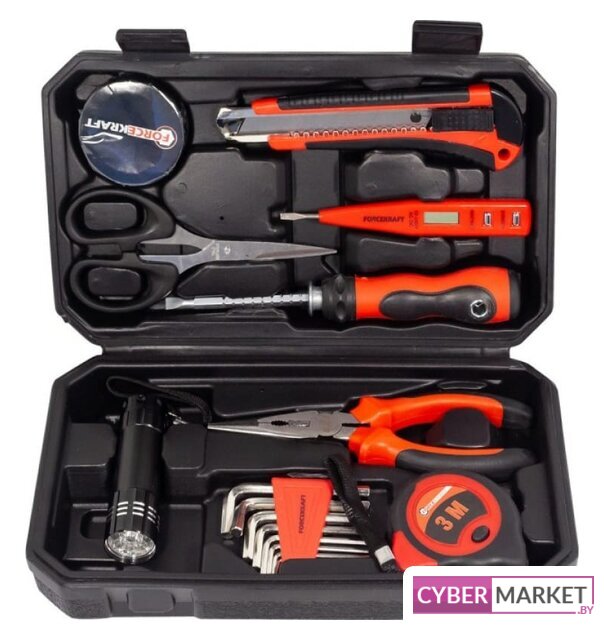| Комплектация | Пластиковый кейсУтконосыКлюч шестигранный 1,5, 2, 2,5, 3, 4, 5, 5,5, 6Рулетка 3мФонарикНожницыНож универсальныйИндикаторная отверткаИзолентаОтвертка реверсивная |