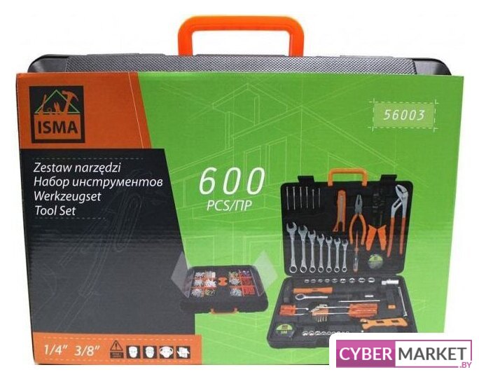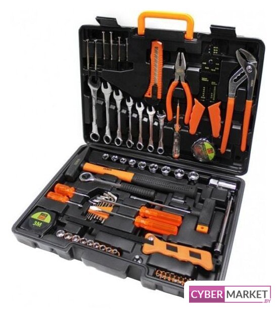 | Комплектация | 9 шт. - 1/4"Головки : 5, 6, 7, 8, 9, 10, 11, 12, 13 мм.9 шт. - 3/8"Головки: 10, 11, 12, 13, 14, 15, 16, 17, 19 мм.1 шт. - 3/8"Удлинитель 125 мм.1 шт. - 3/8"Головка свечная 21 мм.1 шт. - 3/8"Трещотка реверсивная7 шт. - Ключи комбинированные: 10, 11, 12, 13, 14, 15, 17 мм.1 шт. - Адаптер 3/8"(F)x1/4"(M)1 шт. - 1/4"Битодержатель1 шт. - 1/4"T-образная рукоятка8 шт. - Набор ключей Г-образных Hex: 1.5-2-2.5-3-4-5-5.5-6 мм.1 шт.- Пассатижи комбинированные 6"1 шт. - Пассатижи переставные 9"6 шт. - Отвертки для точных работ: PH00-0; SL1.0-1.4-1.8-2.4 мм.4 шт. - Отвертки: PH:2х100 мм., 2х38 мм.; SL:6х100 мм., 6х38 мм.1 шт. - Молоток 300 гр.1 шт. - Съемник изоляции 8"1 шт. - Ножовка ручная1 шт. - Нож универсальный1 шт. - Отвертка индикаторная24 шт. - Биты (с держателем): SL: 3-4-5.5-6 мм. PH: 0-1-2-3 Hex: 3-4-5-6 мм. PZ: 0-1-2-3 T:20-25-30-40 Hex с отверстием: 3-4-5-6 мм."1 шт. - Рулетка 3 м45 шт. - Клеммы соединительные1 шт. - Лента изоляционная ПВХ 5 м472 шт. - Набор крепежа (саморезы, дюбели и пр.)1 шт. - Пластиковый кейс |