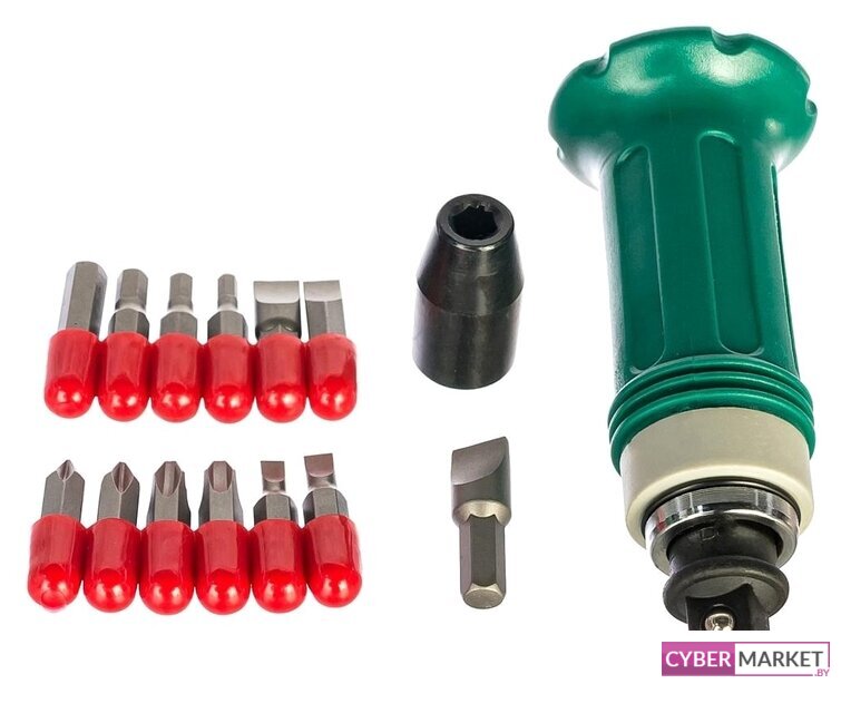 | Комплектация | - ударно-поворотная отвертка с ТПР протектором;- вставки-биты: РН1, РН2, РН3, РН4; Н4, Н5, Н6, Н8;- шлиц прямой (SL) 5, 6, 8, 10, 12 мм. |