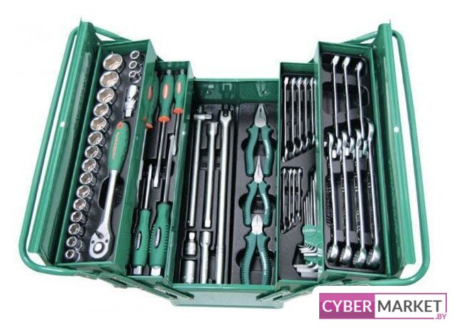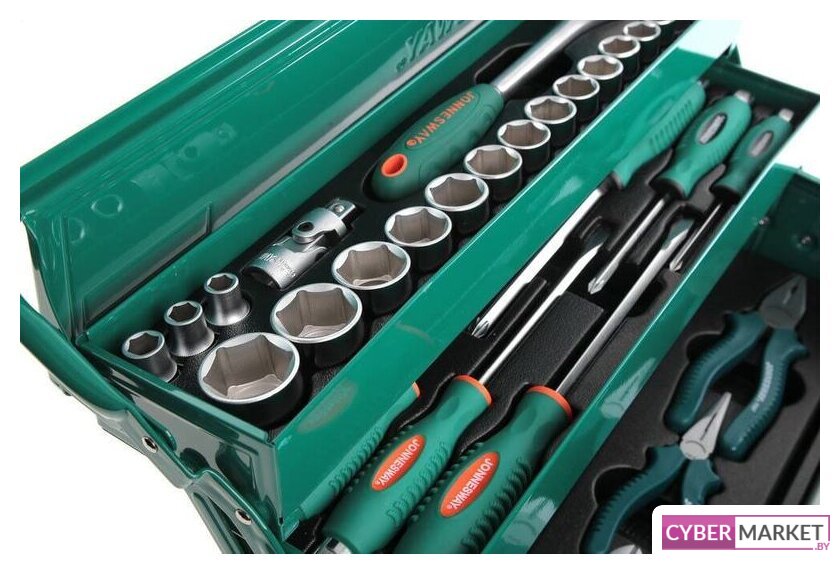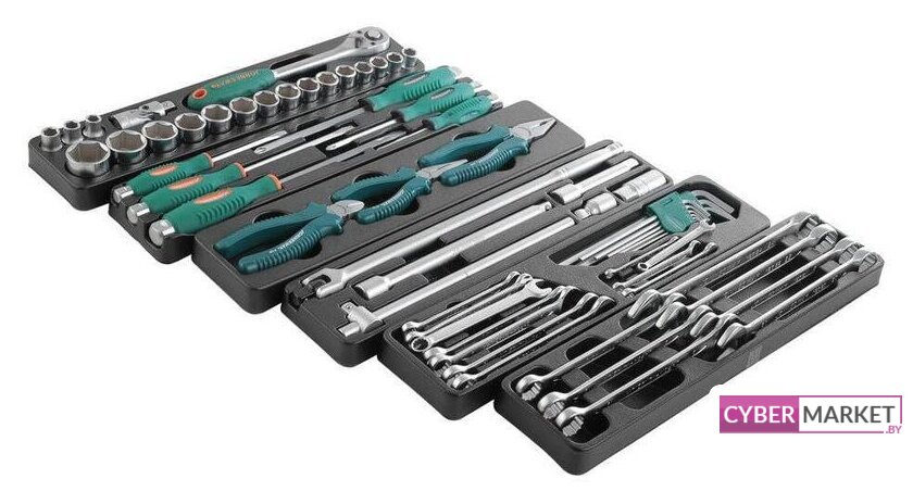 | Комплектация | 1/2" Головки торцевые 10-32 мм, 18 предметов;Ключи комбинированные 6-22, 24 мм, 18 предметов;Отвертки угловые (торцевые ключи) 1.5-10 мм, 9 предметов;Отвертки шлиц прямой, Phillips® (крест) 3+3 штуки;Бокорезы 150 мм;Длиногубцы 150 мм;Пассатижи 175 мм;1/2" Трещоточная рукоятка;1/2" Удлинители 125 и 250 мм;1/2" Вороток Т-образный;1/2" Вороток «гибкая рукоятка»;1/2" Шарнир карданный;1/2" Удлинитель с шаром 50 мм;1/2" Удлинители 125, 250 мм, 2 предмета;1/2" Головка торцевая, свечная 21 мм. |