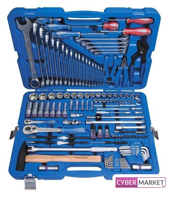 | Комплектация | - Головки и принадлежности 1/2"Головка торцевая стандартная 6-гранная 4335M 8, 9, 10, 11, 12, 13, 14, 15, 16, 17, 18, 19, 21, 22, 24, 27, 30, 32 ммГоловка торцевая глубокая 6-гранная 4235M 10, 12, 13, 14, 15, 17, 19 ммГоловка свечная 6-гранная, резиновый фиксатор 463516R 16 ммГоловка свечная 6-гранная, резиновый фиксатор 463521R 21 ммНасадка (бита) торцевая, HEX, L = 60 мм 4025 H12, H14, H17Трещотка флажковая с кнопкой 4771-10GR 32 зубца, 250 ммВороток с шарниром 4452-15FR 380 ммВороток скользящий 4572-12 300 ммУдлинитель 4251-05R 125 ммУдлинитель 4251-10R 250 ммУдлинитель 15 градусов, с шаровым окончанием 4223-02R 50 ммКардан 4791R 1 шт.- Головки и принадлежности 1/4"Головка торцевая стандартная 6-гранная 2335M 4, 4.5, 5, 5.5, 6, 7, 8, 9, 10, 11, 12, 13 ммГоловка торцевая глубокая 6-гранная 2235M 7, 8, 10, 12, 13 ммНасадка (бита) торцевая, TORX, L = 37 мм 2033 T10, T15, T20, T25, T27Насадка (бита) торцевая, HEX, L = 37 мм 2035 H4, H5, H6, H7, H8, H10Трещотка флажковая с кнопкой 2771-55G 24 зубца, 140 ммВороток скользящий 2571-45 115 ммУдлинитель 2221-03 75 ммУдлинитель 15 градусов, с шаровым окончанием 2293-02 50 ммУдлинитель 15 градусов, с шаровым окончанием 2293-06 150 ммУдлинитель гибкий 2311-06 150 ммКардан 2792 1 шт.- КлючиКлючи комбинированные 1060 6, 7, 8, 9, 10, 11, 12, 13, 14, 15, 16, 17, 19, 21, 22, 24, 27, 30, 32 ммКлючи разрезные 1930 8x10, 9x11, 12x13, 14x17, 17x19 мм- Отвёртки, шестигранники, TORX Крестовые Phillips 1421 PH1 х 80 мм, PH2 х 38 мм, PH2 х 100 мм Шлицевые Slotted 1422 5 х 75 мм, 6.5 х 38 мм, 6.5 х 100 мм Набор Г-образных шестигранников 20219MR 1.5, 2, 2.5, 3, 4, 5, 6, 8, 10 мм Набор Г-образных TORX 20307PR T10, T15, T20, T25, T27, T30, T40- Шарнирно-губцевый инструментПлоскогубцы комбинированные 6111-07 180 ммБокорезы 6211-06 160 ммЗахват переставной 6511-10 250 мм- Ударный и режущий инструментКернер 76104-05 4x120 ммЗубило 76215-05 15x125 ммБородок 76303-05 3x120 ммВыколотка 76404-06 4х150 ммКрейцмейсель 76505-05 2,6х132 ммМолоток 300 гр., немецкий тип 7821-30 1 шт.- Вспомогательный инструментМагнит телескопический 2128-26 2,2 кг / 130 – 640 ммРазмеры кейса: 560 x 400 x 110 ммМатериал кейса: пластик марки ABSЗамки: металлические, тип фиксатора CLIP-LOCK |