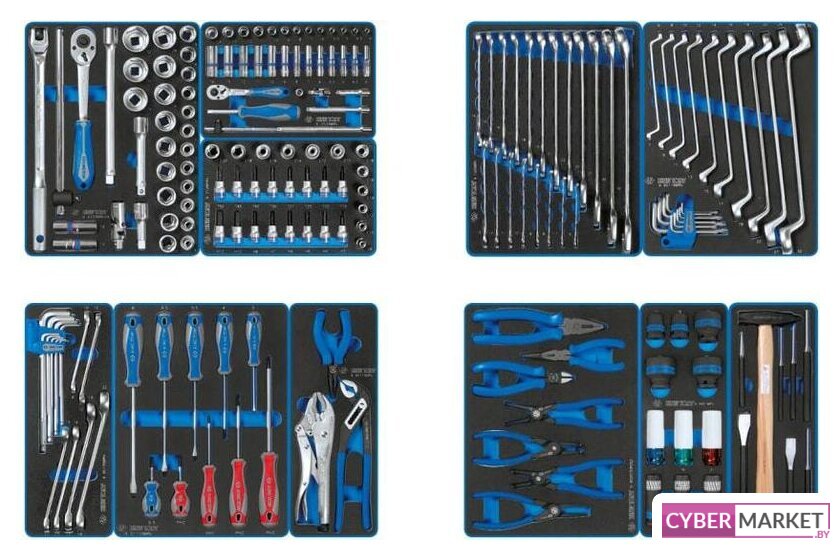 | Комплектация | Головки торцевые стандартные 6-гранные: 8, 9, 10, 11, 12, 13, 14, 15, 16, 17, 18, 19, 20, 21, 22, 23, 24, 25, 26, 27, 28, 29, 30, 32 ммГоловка свечная 12-гранная: 14 ммГоловка свечная 12-гранная: 16 ммТрещотка флажковая: 250 мм, 32 зубцаУдлинители: 75, 125, 250 ммВороток с шарниром: 380 ммВороток скользящий: 300 ммКардан: 77,5 ммГоловки торцевые стандартные6-гранные: 4, 4.5, 5, 5.5, 6, 7, 8, 9, 10, 11, 12, 13, 14 ммГоловки торцевые глубокие6-гранные: 4, 4.5, 5, 5.5, 6, 7, 8, 9, 10, 11, 12, 13, 14 ммТрещотка флажковая: 140 мм, 24 зубцаВороток, скользящий: 115 ммДержатель вставок (бит) 1/4";Отвертка-вороток: 150 ммУдлинители: 50, 100, 150 ммКардан: 36 ммЕ-стандарт (TORX): E10, E12, E14, E16, E18, E20Головки торцевые 3/8"Е-стандарт (TORX): E8, E10, E12, E14, E16, E18Насадки торцевые 3/8"HEX: H3, H4, H5, H6, H7, H8 H10, H12TORX: T15, T20, T25, T27, T30, T40, T45, T50Ключи комбинированные: 6, 7, 8, 9, 10, 11, 12, 13, 14, 15, 16, 17, 18, 19, 21, 22, 24, 27, 30, 32 ммКлючи накидные: 6x7, 8x9, 10x11, 12x13, 14x15, 16x17, 18x19, 20x22, 24x27, 30x32 ммКлючи L-образные TORX: T10, T15, T20, T25, T27,T30, T40, T45, T50Шестигранник Г-образный, с шаровым окончанием KING TONY: 1.5, 2, 2.5, 3, 4, 5, 6, 8, 10Ключ разрезной KING TONY: 8x10, 10x12, 11x13, 12x14, 17x19, 19x22Отвертка крестовая PhillipsPH2 x 38 ммPH1 x 80 ммPH2 x 100 ммPH3 x 150 ммОтвертка шлицевая Slotted3 x 75 мм4 x 100 мм5.5 x 125 мм6.5 x 150 мм8 x 175 мм6.5 x 38 ммЗахват переставной 250 ммПлоскогубцы тонконосые, мини 125 мм Зажим с фиксатором,с закругленными губками 250 ммПассатижи комбинированные: 200 ммБокорезы: 160 ммПассатижи тонконосые: 160 ммЩипцы (съемники) для стопорных колец, разжимные загнутые: 175 ммЩипцы (съемники) для стопорных колец, сжимные загнутые : 175 ммЩипцы (съемники) для стопорных колец, разжимные прямые: 188 ммЩипцы (съемники) для стопорных колец, сжимные прямые: 188 ммГоловка торцевая ударная глубокая 1/2", тонкостенная, пластиковая защита: 17, 19, 21 ммГоловка торцевая ударная шестигранная 1/2": 17, 19, 32, 34, 36 ммГоловка торцевая ударная глубокая 1/2", тонкостенная: 17, 19, 21 ммКернер: 4 x 120Выколотка: 3 x 125, 4 x 150, 5 x 165, 6 x 180Зубило: 17 x 150, 20 x 175Молоток 300 г, квадратный KING TONY 7821-30 |