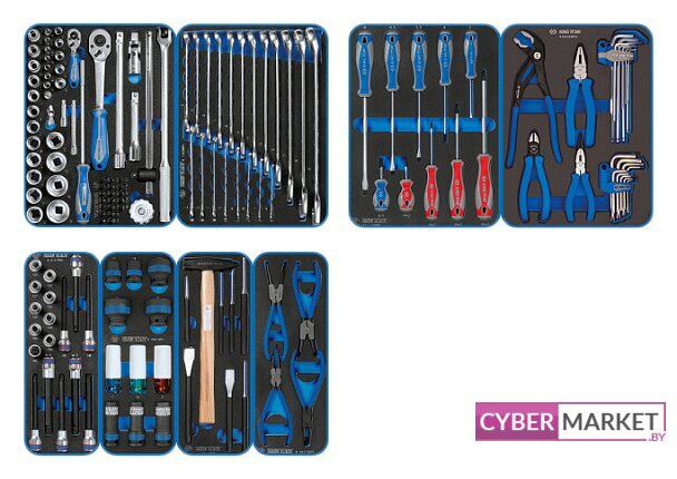 | Комплектация | Модуль 1Набор торцевых головок 1/4"&1/2" с принадлежностями 9-7560MRV01 60 предметовНабор комбинированных ключей 9-12D20MRV 20 предметовМодуль 2 Набор отверток 9-31110MRV 10 предметовНабор пассатижей, шестигранников и TORX Г-образных 9-90222MRV 22 предметаМодуль 3 Набор насадок HEX, TORX и SPLINE 9-4147PRV 17 предметовНабор ударных головок 1/2" 9-4401MPV 11 предметовНабор зубил, выколоток, кернеров с молотком 9-90118PRV 8 предметовНабор съемников стопорных колец 9-44214GPV 4 предмета |