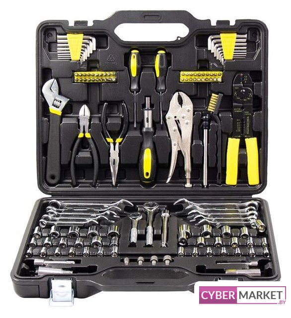 | Комплектация | - Шестигранный ключ (1,5; 2; 2,5; 3; 4; 5; 5,5; 6 мм): 8 шт.- Шестигранный ключ (1/4'', 7/32'', 3/16'', 5/32'', 1/8'', 3/32'', 5/64'', 1/16''): 8 шт.- Отвертка 75х3 мм (PH, SL): 2 шт.- Держатель бит 170мм с трещоткой: 1 шт.- Бита 25мм: 40 шт.(SL3,4,5,6,7; PH0,1,2,3,4; PH1,2,3; PZ0,1,2,3; H1.5,2,2.5; T10,15,20,25,30,35;H3,4,5,6; SL1/8,5/32,11/64,3/16,3/16,7/32,1/4,9/32,5/16; AD)- Разводной ключ 8'': 1 шт, тонкогубцы 6'': 1 шт.- Бокорезы 6'': 1 шт, манометр: 1 шт.- Металлическая щетка: 1 шт, пинцы 7'': 1 шт.- Стриппер для зачистки проводов 8'': 1 шт.- Комбинированный гаечный ключ (10, 12, 13, 14, 15, 3/8'', 7/16'', 1/2'', 9/16'', 5/8''): 10 шт.- Рукоятка с трещоткой квадрат 1/4'': 1 шт.- Рукоятка с трещоткой квадрат 3/8'': 1 шт.- Торцевая головка квадрат 1/4'' (4, 4.5, 5, 5.5, 6, 6.5, 7, 8, 9, 10, 11, 12, 13, 14 мм): 14 шт.- Торцевая головка квадрат 1/4'' (5/32'', 3/16'', 7/32'', 1/4'', 9/32'', 5/16'', 11/32'', 3/8'', 7/16'', 1/2''): 10 шт.- Торцевая головка квадрат 3/8'' (12, 13, 14, 15, 16, 17 мм): 6 шт.- Торцевая головка квадрат 3/8'' (3/8'', 7/16'', 1/2'', 9/16'', 5/8'', 11/16''): 6 шт.- Удлинитель 3'', 6'' квадрат 3/8'': 2 шт.- Удлинитель 3'' квадрат 1/4'': 1 шт.- Свечной ключ квадрат 3/8'' 16 мм: 1 шт, 3/8'' 21 мм: 1 шт.- Насадка (шестигранник) квадрат 1/4'' (1/4'', 5/16'', 3/8'', 7/16''): 4 шт. |