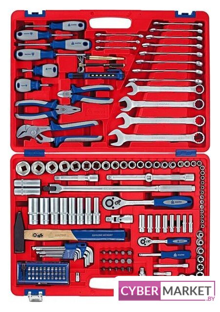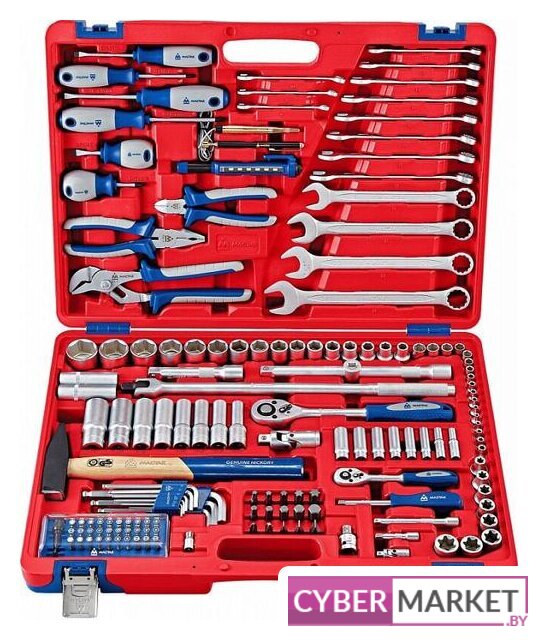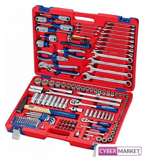 | Комплектация | – Головки торцевые и принадлежности 1/2"Головки торцевые стандартные 6-гранные – 10, 11, 12, 13, 14, 15, 16, 17, 18, 19, 21, 22, 24, 27, 30, 32 ммГоловки торцевые глубокие 6-гранные – 10, 12, 13, 14, 17, 19, 22, 24 ммГоловки торцевые TORX Е-стандарт – E10, E12, E14, E16, E18, E20, E22, E24Головки свечные 12-гранные – 14, 16 ммУдлинители стандартные – 125, 250 ммТрещотка флажковая с кнопкой – 45 зубцов, длина 250 ммВороток с шарниром – 430 ммКардан – 1 шт.Переходник с отверстием для воротка – 3/8" х 1/2"Переходник адаптер для вставок (бит) – F1/2">F5/16" (8 мм)– Головки торцевые и принадлежности 1/4"Головки торцевые стандартные 6-гранные – 4, 4.5, 5, 5.5, 6, 7, 8, 9, 10, 11, 12, 13 ммГоловки торцевые глубокие 6-гранные – 6, 7, 8, 9, 10, 11, 12, 13 ммГоловки торцевые TORX Е-стандарт – E4, E5, E6, E7, E8Удлинители стандартные – 50, 100 ммТрещотка флажковая с кнопкой – 45 зубцов, длина 125 ммПереходник адаптер для вставок (бит) – F1/4 > F1/4"Кардан – 1 шт.Отвертка-вороток – 150 мм– Вставки (биты) 5/16" (8 мм)Крестовые Phillips – PH3, PH4Шлицевые Slotted – 8, 10, 12 ммTORX – T40, T45, T50, T55, T60Шестигранные – H7, H8, H10, H12, H14– Вставки (биты) 1/4" (6.35 мм)Набор вставок с держателем для дрели – 31 предмет– КлючиКлючи комбинированные – 8, 9, 10, 11, 12, 13, 14, 15, 16, 17, 18, 19, 21, 22, 24 мм– ОтверткиКрестовые Phillips – №1 х 75 мм, №2 х 100 мм, №2 х 38 ммШлицевые Slotted – 5.5 х 75 мм, 6.5 х 100 мм, 6.5 х 38 мм– Шарнирно-губцевый инструментПлоскогубцы комбинированные – длина 175 ммБокорезы стандартные – длина 150 ммЗахват переставной – длина 250 мм– Прочий инструментНабор шестигранников – 1.5, 2, 2.5, 3, 4, 5, 6, 8, 10 ммМолоток – 500 грМагнит телескопический – 1 шт.Индикатор напряжения – 6-24 ВФонарь LED Pen – 1 шт. |