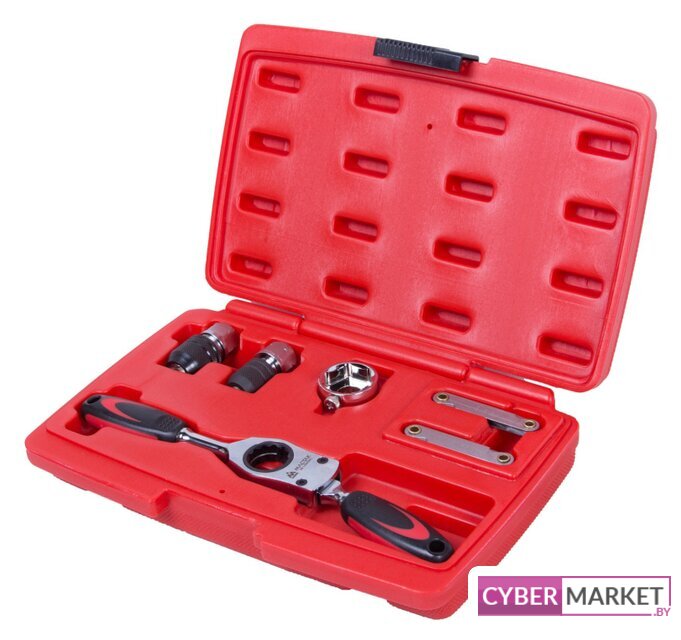 | Комплектация | • Ключ трещоточный – 1 шт.• Метчикодержатель M3-M6 – 1 шт.• Метчикодержатель M6-M12 – 1 шт.• Плашкодержатель – 1 шт.• Резьбомер – 2 шт. |