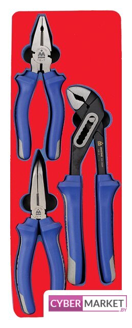 | Комплектация | • Пассатижи комбинированные 180 мм.• Плоскогубцы тонконосые загнутые 200 мм.• Пассатижи переставные на шарнире с проточкой 250 мм. |