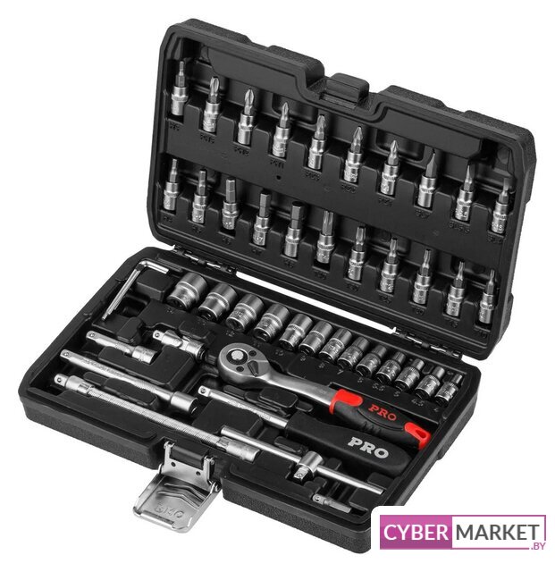 | Комплектация | Головка торцевая 1/4": 4, 4.5, 5, 5.5, 6, 7, 8, 9, 10, 11, 12, 13, 14 мм;Головка с насадкой HEX 1/4": H3, H4, H5, H6, H7, H8;Головка с насадкой TORX 1/4": T10, T15, T20, T25, T30, T40;Головка с насадкой SL 1/4": SL4, SL5.5, SL7;Головка с насадкой PH 1/4": PH1, PH2, PH3;Головка с насадкой PZ 1/4": PZ1, PZ2, PZ3;Трещотка 1/4";Переходник 1/4" под шуруповерт;Удлинитель 1/4" 50 мм;Удлинитель 1/4" 100 мм;Кардан 1/4";Вороток-отвертка 1/4" 150 мм;Вороток 1/4" с плавающей головкой 115 мм;Гибкий удлинитель 1/4";Ключ шестигранный Г-обр.: 1.27, 1.5, 2, 2.5 мм;Кейс |