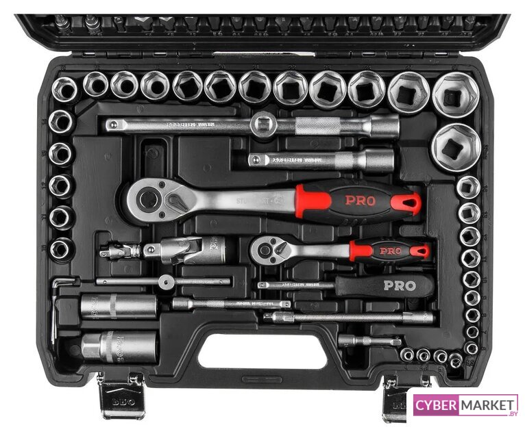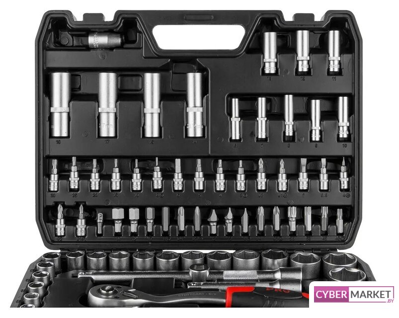| Комплектация | Головка торцевая 1/4": 4, 4.5, 5, 5.5, 6, 7, 8, 9, 10, 11, 12, 13, 14 мм;Головка торцевая глубокая 1/4": 6, 7, 8, 9, 10, 11, 12, 13 мм;Головка с насадкой HEX 1/4": H3, H4, H5, H6;Головка с насадкой TORX 1/4": T8, T10, T15, T20, T25, T30;Головка с насадкой SL 1/4": SL4, SL5.5, SL7;Головка с насадкой PH 1/4": PH1, PH2;Головка с насадкой PZ 1/4": PZ1, PZ2;Головка торцевая 1/2": 10, 11, 12, 13, 14, 15, 16, 17, 18, 19, 20, 21, 22, 23, 24, 27, 30, 32 мм;Головка торцевая глубокая 1/2": 14, 15, 17, 19 мм;Свечная головка 1/2": 16, 21 мм;Насадка 5/16" HEX: H8, H10, H12, H14;Насадка 5/16" TORX: T40, T45, T50, T55;Насадка 5/16" SL: SL8, SL10, SL12;Насадка 5/16" PH: PH3, PH4;Насадка 5/16" PZ: PZ3, PZ4;Трещотка 1/4";Переходник 1/4" под шуруповерт;Удлинитель 1/4" 50 мм;Удлинитель 1/4" 100 мм;Гибкий удлинитель 1/4";Кардан 1/4";Вороток-отвертка 1/4" 150 мм;Вороток 1/4" с плавающей головкой 115 мм;Трещотка 1/2";Переходник (держатель для бит) 1/2"х5/16"(HEX);Удлинитель 1/2" 125 мм;Удлинитель 1/2" 250 мм;Кардан 1/2";Переходник 3/8"х1/2" с отверстием;Ключ шестигранный Г-обр.: 1.5, 2, 2.5 мм;Кейс |