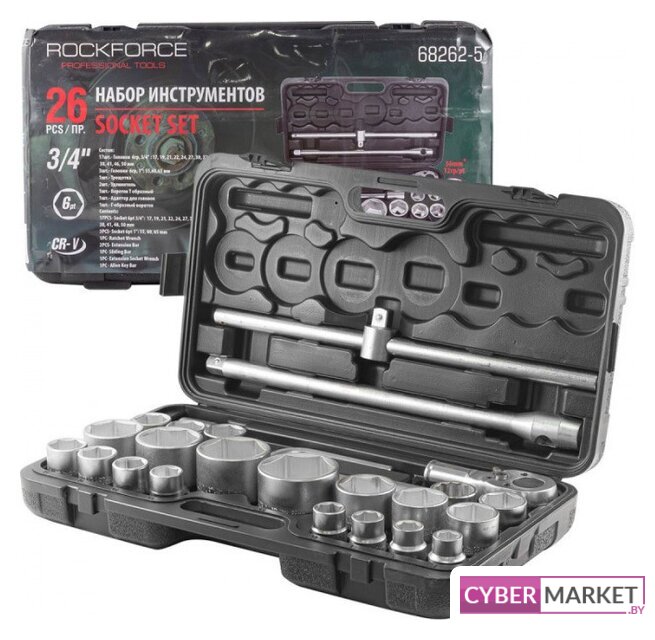 набор трещотка с головками, 3/4", 26 предметов