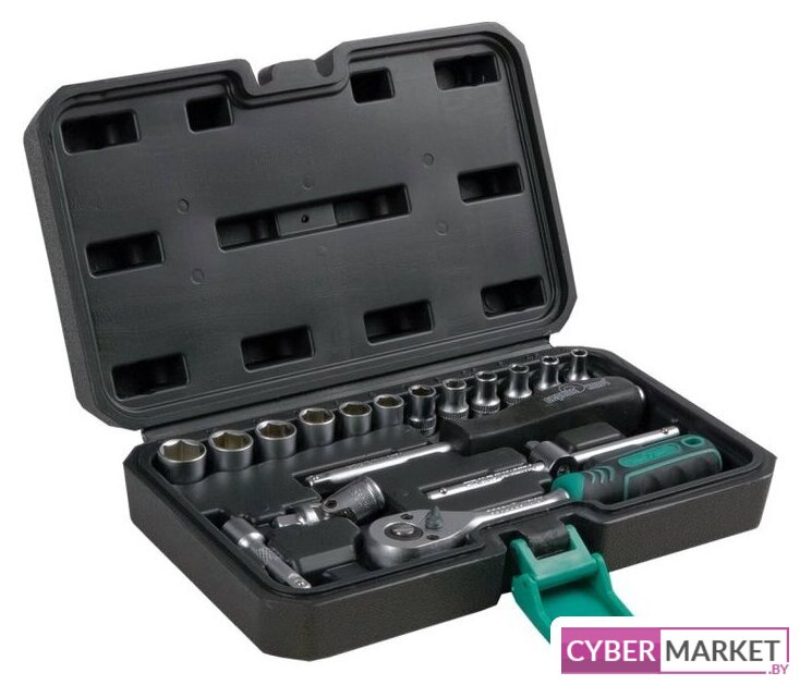 | Комплектация | - Головки 6 граней 1/4”: 4, 4.5, 5, 5.5, 6, 7, 8, 9, 10, 11, 12 и 13 мм, - Трещотка 1/4” (длина 260 мм), - Кардан 1/4", - Т-образный вороток 1/4” (длина 125 мм), - Удлинитель 1/4” 50 мм, - Вороток-отвертка 150 мм |