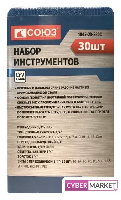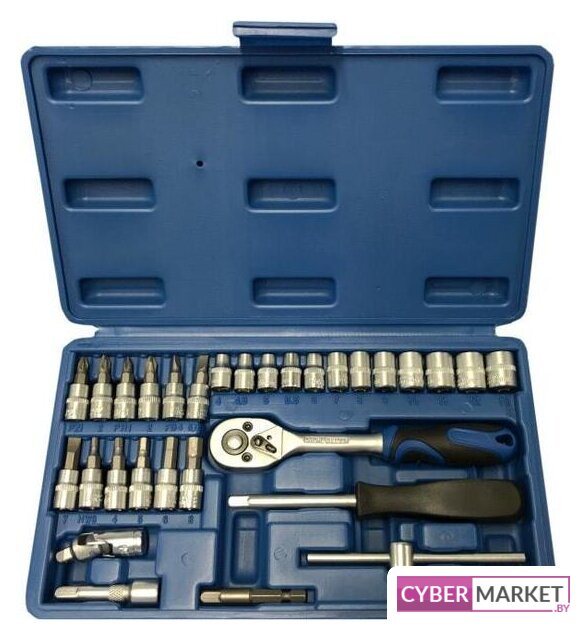 | Комплектация | Переходник 1/4"-HEX , Трещоточая рукотяка 1/4", 12 шт головок : 4,4.5,5.5,6,7,8,9,10,11,12,13 мм, Преходник карданный 1/4", Удлинитель 1/4" 50 мм, Отвертка-адаптер 1/4", Вороток 1/4", Биты с переходником 1/4" - 12 шт: H3, H4,H5,H6,H8, SL4,SL5.5,SL7, PH1, PH2, PZ1, PZ2 |
