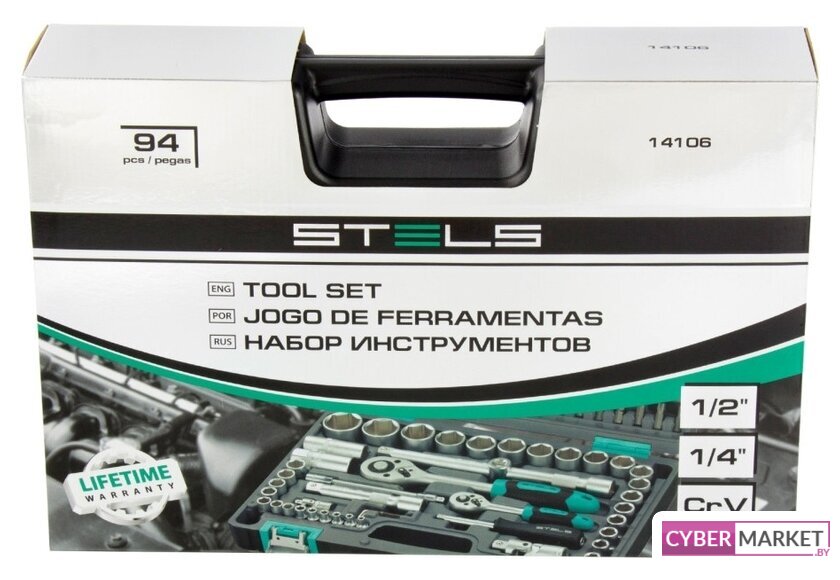 | Комплектация | - Ключ трещоточный 1/4.- Ключ трещоточный 1/2.- Головки торцевые 1/2: 10, 11, 12, 13, 14, 15, 16, 17, 18, 19, 20, 21, 22, 23, 24, 27, 30, 32.- Головки торцевые 1/4: 4, 4.5, 5, 5.5, 6, 7, 8, 9, 10, 11, 12, 13, 14.- Головки свечные 21 мм под ключ, и 16 мм.- Удлинители 1/2 125 мм.- Удлинители 1/4 100 мм и 50 мм.- Удлинитель гибкий 1/4 145 мм, под ключ.- Кардан на 1/2 и 1/4.- Ремкоплект шестигранников 2.5 мм, 2 мм, 1.5 мм.- Вороток на 1/4, 1/2.- Головка торцевая удлиненная 1/2: 14, 15, 17, 19.- Головка торцевая удлиненная 1/4: 6, 7, 8, 9, 10, 11, 12, 13.- Биты, диаметр 8 мм диаметр, длина 30 мм Н8, Н10, Н12, Н14, PH4, PH3, SL8, SL10, SL12, PZ4, PZ3, T55, T50, T45, T40.- Биты с торцевыми головками PH1, PH2, SL4, SL5.5, SL7, PZ1, PZ2, H3, H4, H5, H6, T8, T10, T15, T20, T25, T30.- Переходник 1/2 ”четырехгранника на шестигранник Н 5/16. |