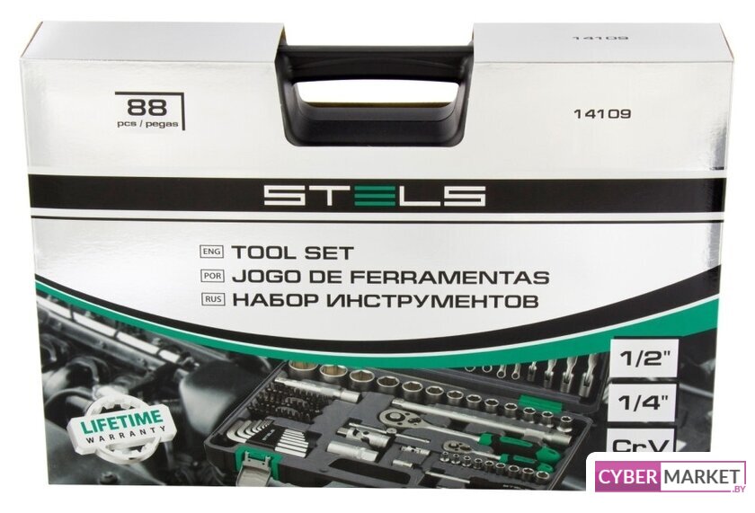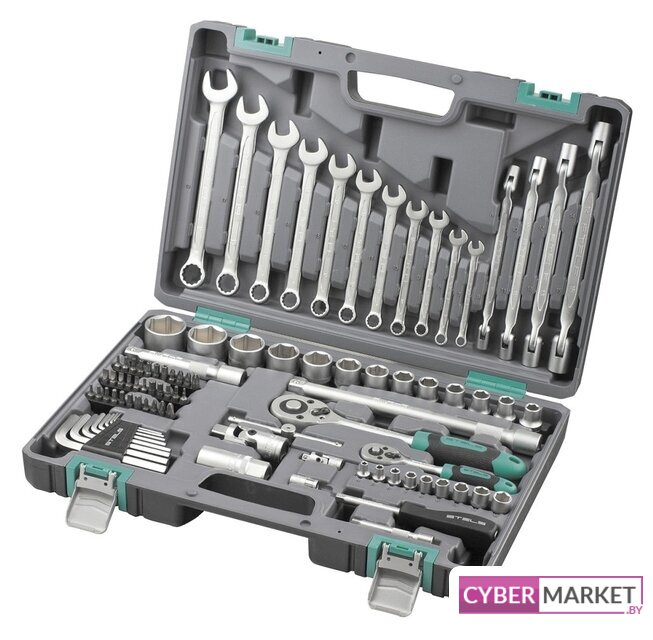 | Комплектация | - Ключ трещоточный 1/2.- Ключ трещоточный 1/4.- Головки торцевые 1/2: 10, 11, 12, 13, 14, 15, 17, 19, 22,24, 27, 30, 32 мм.- Головки торцевые 1/4: 4, 5, 6, 7, 8, 9, 10, 11, 12 мм.- Ключи комбинированные 6,7,8,9,10,11,12,13,14,17,19.- Ключи шарнирные 8х9, 10х11, 12х13, 14х15.- Кардан 1/2.- Кардан 1/4.- Удлинитель 1/2, соединение под ключ 120 мм и 250 мм.- Удлинитель 1/4, соединение под ключ 100 мм.- Отвертка-держатель 1/4.- Вороток Т-образный 1/4.- Угловые шестигранные ключи 2 мм, 2.5 мм, 3 мм, 4 мм, 5 мм, 6 мм, 8 мм, 10 мм.- Головки свечные 1/2 16 мм и 21 мм.- Переходник бит 1/4->1/4.- Биты 1/4" Т10, Т15, Т20, Т25, Т27, Т30, T40. ТТ10, ТТ15, ТТ20, ТТ25, ТТ27, ТТ30, ТT40. SL 4, SL 5.5, SL 7. Н2, Н3, Н4, Н5, Н6, Н7, Н8, Н10. PZ 0, PZ 1, PZ 2, PZ 3. РН0, РН1, РН2, PH3. |