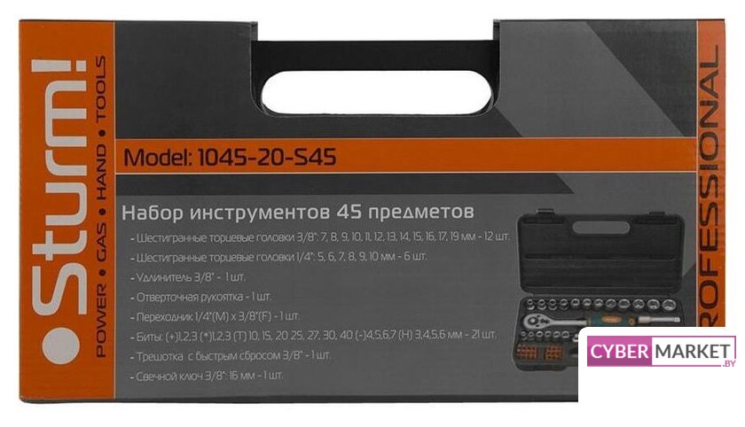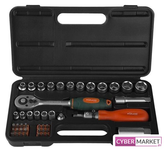 | Комплектация | Шестигранные торцевые головки 3/8" - 12 шт: 7-8-9-10-11-12-13-14-15-16-17-19; Шестигранные торцевые головки 1/4" - 6 шт: 5-6-7-8-9-10; Удлинитель 3/8" - 1 шт; Отверточная рукоятка - 1 шт; Переходник 1/4" (М) - 3/8" (F) - 1шт; Биты - 21 шт; Трещотка с быстрым сбросом 3/8" - 1шт; Свечной ключ 3/8": 16 мм - 1 шт. |