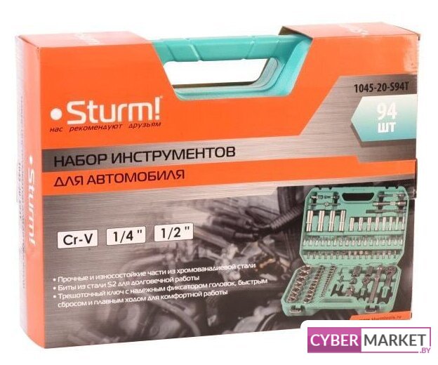 | Комплектация | - Ключ трещоточный 1/4" - Ключ трещоточный 1/2"- Головки торцевые 1/4" 13 шт: 4, 4.5, 5, 5.5, 6, 7, 8, 9, 10, 11, 12, 13, 14 - Головки торцевые 1/2" 18 шт: 10, 11, 12, 13, 14, 15, 16, 17, 18, 19, 20, 21, 22, 23, 24, 27, 30, 32- Головки торцевые удлиненные 1/4" 8 шт: 6, 7, 8, 9, 10, 11, 12,- Головки торцевые удлиненные 1/2" 4 шт : 14, 15, 17, 19 - Биты с торцевыми головками 17 шт: PH1, PH2, SL4, SL5.5, SL7, PZ1, PZ2, H3, H4, H5, H6, T8, T10, T15, T20, T25, - Биты 15 шт: Н8, Н10, Н12, Н14, PH4, PH3, SL8, SL10, SL12, PZ4, PZ3, T55, T50, T45, T40 - Адаптер для бит 1/4" - Шестигранные ключи 3 шт: 2.5 мм, 2 мм, 1.5 мм - Отвертка-битодержатель - Гибкий удлинитель 1/4" - Удлинители 1/4" 100 мм и 50 мм - Головки свечные 21 мм и 16 мм - Кардан на 1/2" и 1/4" - Удлинитель 1/2" 125 мм - Вороток на 1/2" и 1/4 - Переходник с 1/2" четырехгранника на шестигранник Н 5/16 |