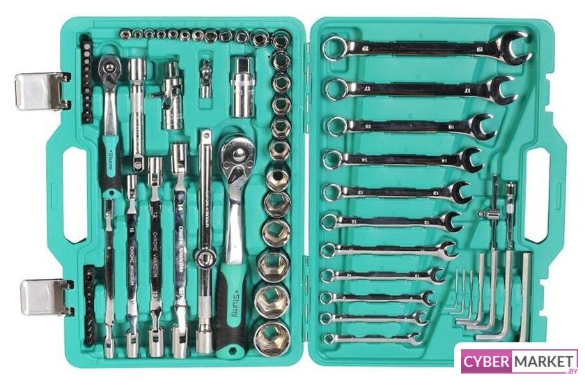 | Комплектация | - Шестигранные торцевые головки 1/4’’: 4. 5. 6. 7. 8. 9. 10. 11. 12мм–9 шт;- Шестигранные торцевые головки 1/2’’: 10. 11. 12. 13. 14. 1 5. 17. 19. 22. 24. 27. 30. 32мм–13 шт;- Двойные карданные ключи: 8x9. 10x11. 12x13. 14x15 мм–4 шт;- Трещотка с быстрым сбросом 1/4’’–1 шт;- Адаптер для бит–1 шт;- Карданный шарнир–1 шт;- Вороток Т- образный–1 шт;- Удлинитель 75 мм–1 шт;- Трещотка с быстрым сбросом–1шт;- Удлинитель 250 и 125 мм–1 шт;- Карданный шарнир–1 шт;- Свечная головка 21 мм–1шт;- Держатель для бит–1 шт;- Биты: TORX: 10.15. 20. 25. 30–5 шт; HEX: 2. 3. 4. 5. 6 мм–5шт; SL: 3. 4. 5.5. 7 мм–4 шт; PH: 0. 1. 2. 3–4 шт; PZ: 1. 2. 3–3 шт;- Шестигранные угловые ключи: 1.5. 2. 2.5. 5. 6. 8. 10 мм–7 шт;- Комбинированные ключи: 7. 8. 9. 10. 11. 12. 13. 14. 15. 17. 19 мм–8 шт; |