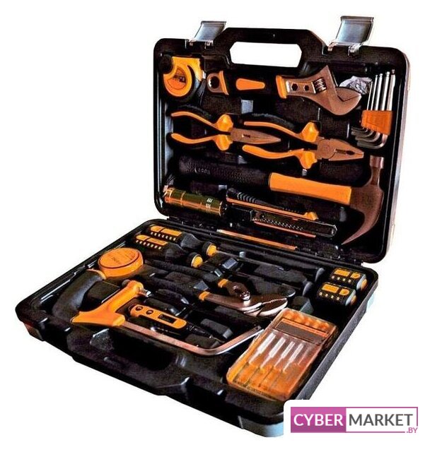 | Комплектация | Инструменты в комплекте: молоток, отвёртки, пассатижи, круглогубцы, ножовка по металлу, отвёртки для точных работ, ключ разводной, ключ переставной гаечный, ключи имбусовые (шестигранные)Аксессуары в комплекте: нож, изолента, фонарь, рулетка, отвертка индикаторнаяОтвёртки: Количество отверток: 11 шт.Шлицы отвёрток: крестообразный (PH), прямой (SL) |