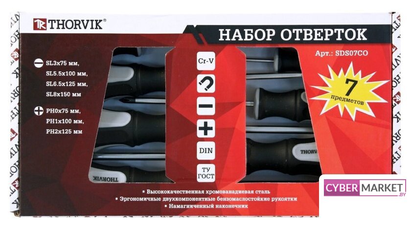 | Комплектация | Набор отверток стержневых:- SL3х75 мм- SL5.5х100 мм- SL6.5х125 мм- SL8х150 мм- PH0х75 мм- PH1х100 мм- PH2х125 мм |