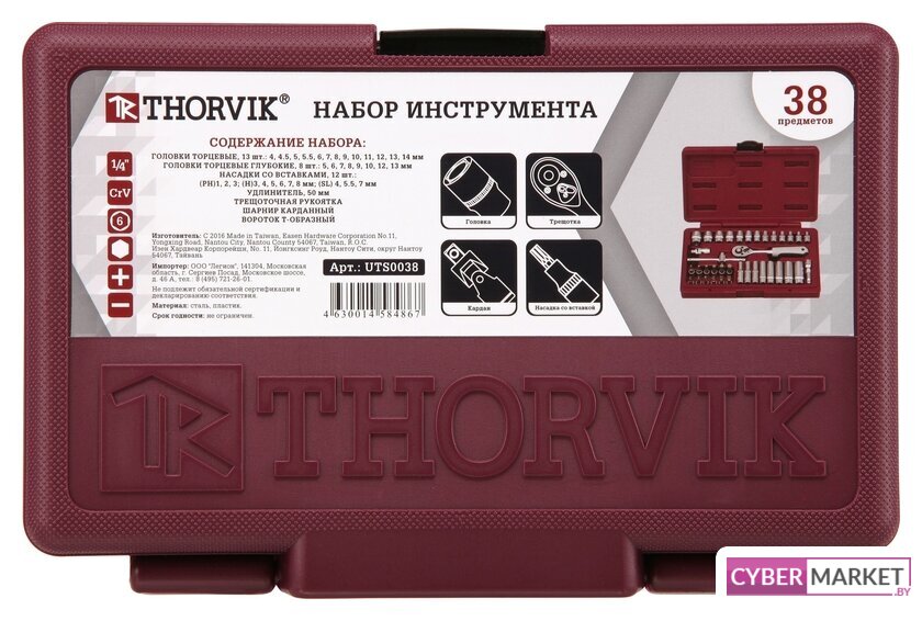 | Комплектация | Головки торцевые 1/4"DR, 13 шт.- 4, 4.5, 5, 5.5, 6, 7, 8, 9, 10, 11, 12, 13, 14 ммГоловки торцевые глубокие 1/4"DR, 8 шт. - 5, 6, 7, 8, 9, 10, 12, 13 ммНасадки с вставками 1/4"DR, 12 шт. - (РН)1, 2, 3; (H)3, 4, 5, 6, 7, 8 мм; (SL) 4, 5.5, 7 ммУдлинитель 1/4"DR - 50 ммТрещоточная рукоятка 1/4"DR - 150 мм, 48 зубцовШарнир карданный 1/4"DR - 35 ммВороток Т-образный 1/4"DR - 110 мм |