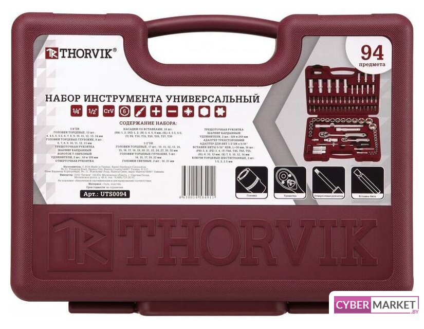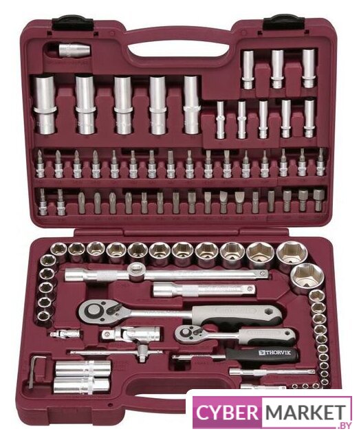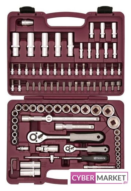| Комплектация | Головки торцевые 1/4", 13 шт. 4, 4.5, 5, 5.5, 6, 7, 8, 9, 10, 11, 12, 13, 14 ммГоловки торцевые глубокие 1/4", 8 шт. 6, 7, 8, 9, 10, 11, 12, 13 ммТрещоточная рукоятка 1/4" 150 мм, 48 зубцовШарнир карданный 1/4" 35 ммВороток т-образный 1/4" 110 ммУдлинители 1/4", 2 шт. 50 и 100 ммОтверточная рукоятка 1/4" 150 ммНасадки с вставками 1/4", 18 шт. (РН) 1, 2; (PZ) 1, 2; (H) 3, 4, 5, 6 мм; (SL) 4, 5.5, 6.5 (T) Т8, Т10, Т15, Т20, Т25, Т27, Т30Головки торцевые 1/2", 17 шт. 10, 11, 12, 13, 14, 15, 16, 17, 18, 19, 20, 21, 22, 24, 27, 30, 32 ммГоловки торцевые глубокие 1/2", 5 шт. 14, 15, 17, 19, 22 ммГоловки свечные 1/2", 2 шт. 16, 21 ммТрещоточная рукоятка 1/2" 250 мм, 48 зубцовШарнир карданный 1/2" 70 ммУдлинители 1/2", 2 шт. 125 и 250 ммАдаптер трехсторонний 1/2" Адаптер для бит 1/2" х 5/16”H Вставки-биты 5/16” H L=30 мм, 16 шт. (РН) 3, 4; (PZ) 3, 4; (T) Т40, Т45, Т50, Т55 (SL) 8, 10, 12 мм (H) 7, 8, 10, 12, 14 ммКлючи торцевые шестигранные, 3 шт. 1.5, 2, 2.5 мм |
