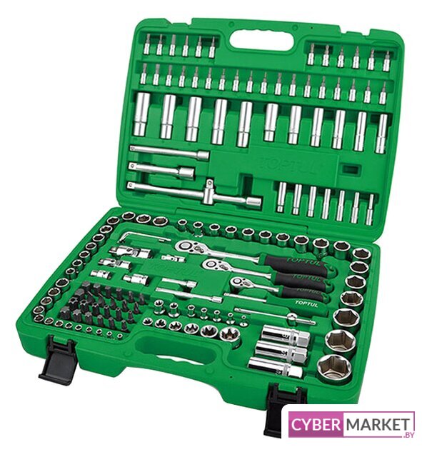 | Комплектация | Головка торцевая 1/4 дюйма (4, 4.5, 5, 5.5, 6, 7, 8, 9, 10, 11, 12, 13, 14 мм) Головка торцевая 3/8 дюйма (10, 11, 12, 13, 14, 15, 16, 17, 18, 19 мм) Головка торцевая 1/2 дюйма (10, 11, 12, 13, 14, 15, 16, 17, 18, 19, 20, 21, 22, 24, 27, 30, 32 мм) Головка торцевая длинная 1/4 дюйма (4, 5, 6, 7, 8, 9, 10 мм) Головка торцевая длинная 3/8 дюйма (10, 11, 12, 13, 14, 15 мм) Головка торцевая длинная 1/2'' (16, 17, 18, 19, 22 мм) Головка торцевая 1/4 дюйма TORX (E4, E5, E6, E7, E8) Головка торцевая 3/8 дюйма TORX (E10, E11, E12, E14, E16, E18) Головка торцевая 1/2 дюйма TORX (E20, E24) Головка с шлицевой насадкой 1/4 дюйма (4, 5.5, 6.5, 7 мм) Головка с насадкой PH 1/4 дюйма (PH0, PH1, PH2) Головка с насадкой PZ 1/4 дюйма (PZ0, PZ1, PZ2) Головка с насадкой TORX 1/4 дюйма (T8, T9, T10, T15, T20, T25, T27, T30) Головка с насадкой HEX 1/4 дюйма (3, 4, 5, 6 мм) Головка с насадкой TORX (с отверстием) 1/4 дюйма (T8, T9, T10, T15, T20, T25, T27, T30) Головка свечная 3/8 дюйма (18 мм) Головка свечная 1/2 дюйма (16 и 21мм) Держатель бит 3/8 дюйма х 5/16 дюйма Держатель бит 1/2 дюйма х 5/16 дюйма Насадка шлицевая для ударной отвертки 5/16 дюйма (8, 10, 12 мм) Насадка PH для ударной отвертки 5/16 дюйма (PH3, PH4) Насадка PZ для ударной отвертки 5/16 дюйма (PZ3, PZ4) Насадка TORX для ударной отвертки 5/16 дюйма (T40, T45, T50, T55, T60, T70) Насадка HEX для ударной отвертки 5/16 дюйма (7, 8, 10, 12, 14) Насадка TORX (с отверстием) 5/16 дюйма (T40, T45, T50, T55, T60, T70) Трещетка 72 зуба 1/4, 3/8 и 1/2 дюйма Карданный шарнир 1/4, 3/8 и 1/2 дюйма Вороток с плавающей головкой 115мм 1/4 дюйма Вороток-отвертка 150 мм 1/4 дюйма Удлинители 50 мм и 100мм 1/4 дюйма Удлинитель 155 мм 3/8 дюйма Удлинители 125 и 250 мм 1/2 дюйма Переходник с отверстием 3/8 х 1/2 дюйма Ключ шестигранный HEX укороченный (1.27, 1.5, 2, 2.5, 3, 4, 5 мм) |
