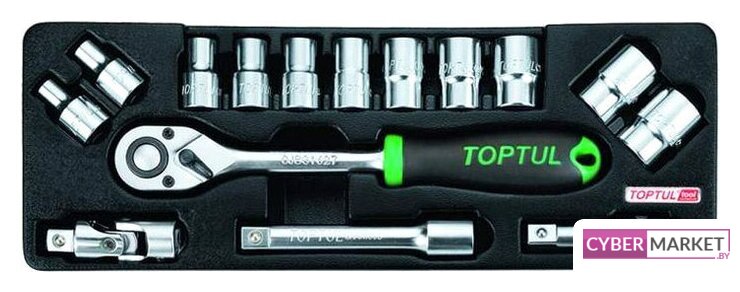| Торцевые головки 1/2" | 15 предмет(ов) (8, 10, 11, 12, 13, 14, 17, 19, 21, 22, 24 мм) |