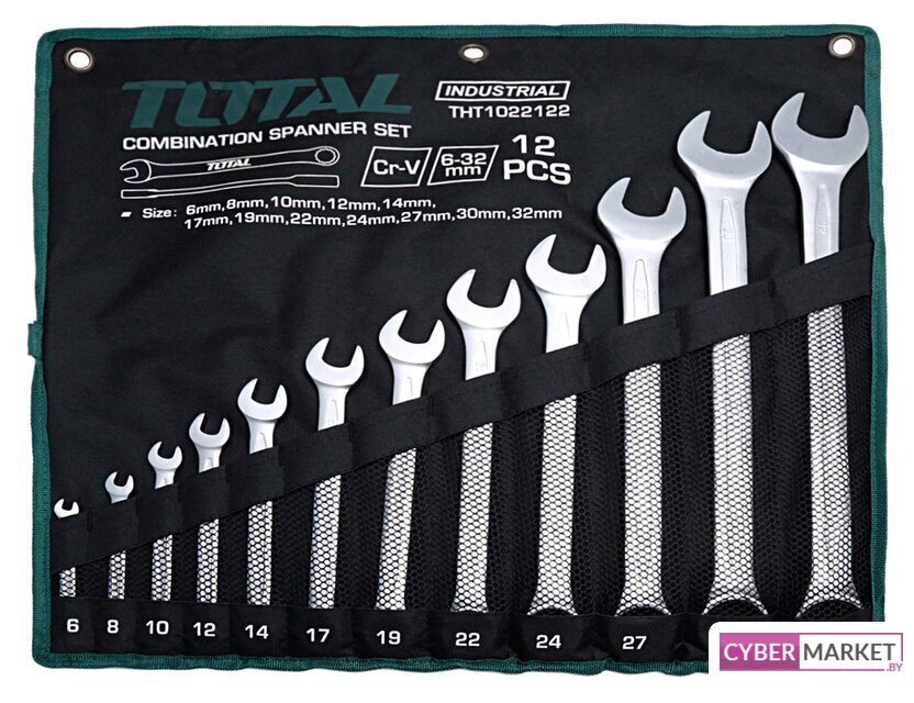 | Комплектация | Набор ключей комбинированных TOTAL THT1022122 - 12шт. 6мм, 8мм, 10мм, 12мм, 14мм, 17мм, 19мм, 22мм, 24мм, 27мм, 30мм, 32мм.Чехол для хранения |