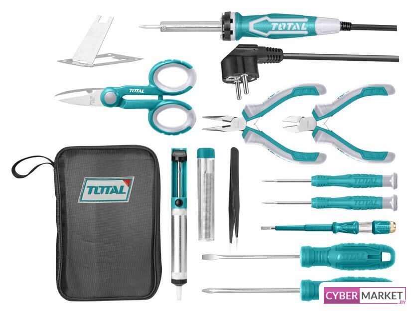 | Комплектация | Плоскогубцы с длинным носом 4,5 " - 1 шт.Бокорезы 4,5" - 1 шт.Шлицевая отвертка SL5,5x100 мм - 1 шт.Крестовая отвертка PH1x100 мм - 1 шт.Прецизионная отвертка PH000x50 мм - 1 шт.Прецизионная отвертка SL2.0x50 мм - 1 шт.Ножницы 5,5" - 1 шт.Электрический паяльник 40 Вт - 1 шт.Подскавка для электрического паяльника - 1 шт.Припой 6" - 1 шт.Вакуумный экстрактор (оловоотсос) - 1 шт.Пинцет 125 мм - 1 шт.Индикаторная отвертка 140 мм - 1 шт.Сумка для хранения - 1 шт. |