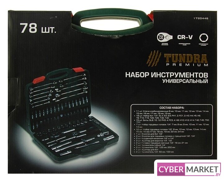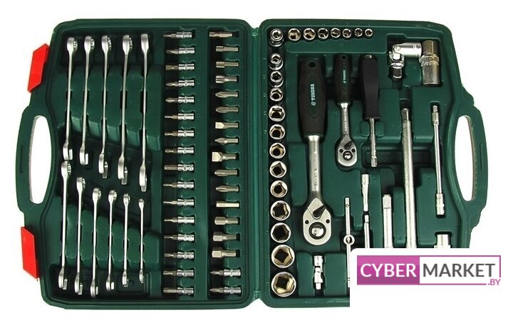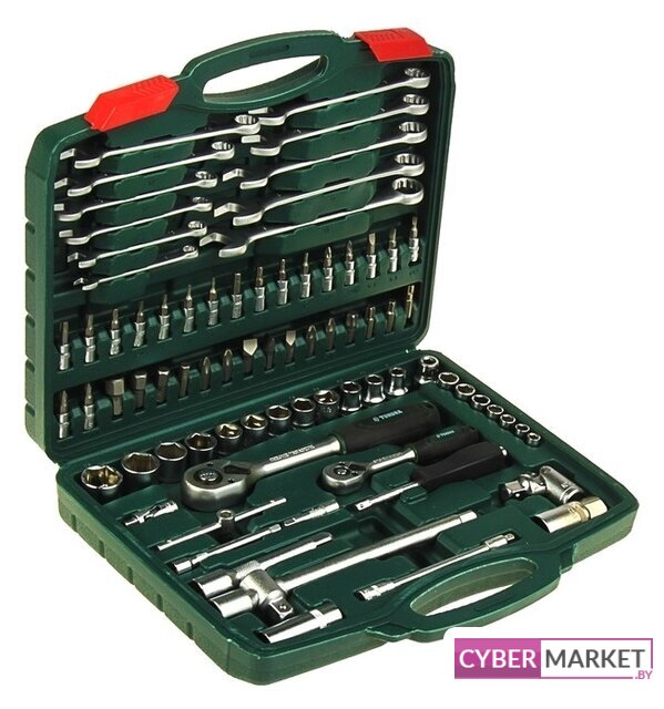 | Комплектация | - Ключи комбинированные, 11 шт.: 8, 10, 11, 12, 13, 14, 15, 16, 17, 18, 19 мм.- Биты (1/4″, 18 шт.): SL4; SL5,5; SL6,5; PH1; PH2; PZ1; PZ2; H3; H4; H5; H6; T8; T10; T15; T20; T25; T30; T40.- Биты, 15 шт: SL8, SL10, SL12; PH3, PH4; PZ3; PZ4; H8, H10, H12, H14; T40; T45; T50; T55.- Торцевые головки (1/4″, 7 шт.): 7, 8, 9, 10, 11, 12, 13 мм.- Торцевые головки (1/2″, 12 шт.): 8, 10, 12, 13, 14, 15, 16, 17, 18, 19, 22, 24 мм.- Вороток для бит 1/2″.- Вороток для торцевых головок с трещоткой, 2 шт.: 1/2″, 1/4″ .- Карданный переходник, 2 шт.: 1/2″, 1/4″.- Адаптер для воротка, 2 шт.: 1/2″, 1/4″.- Торцевые головки свечные (1/2″, 2 шт.).: 16, 21 мм.- Удлинитель для воротка гибкий 1/4″.- Удлинитель для воротка (1/2″, 2 шт.).: 125, 250 мм.- Удлинитель для воротка (1/4″, 2 шт.).: 50, 100 мм.- Адаптер для бит. |