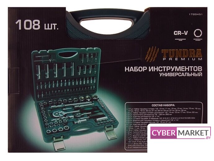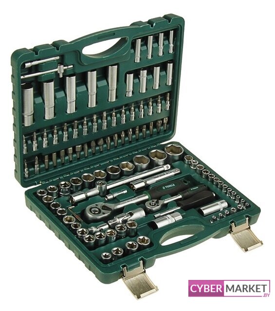 | Комплектация | - 6-гранные ключи — 3 шт. (1.5; 2; 2.5 мм).- Набор бит — 17 шт. (H7, H8, H10, H12, H14, T40, T45, T50, T55, T60, SL8, SL10, SL12, PH3, PH4, PZ3, PZ4).Инструменты с посадочным размером 1/4″:- торцевые головки — 13 шт. (4; 4.5; 5; 5.5; 6; 7; 8; 9; 10; 11; 12; 13; 14 мм);- торцевые головки удлинённые — 8 шт. (6, 7, 8, 9, 10, 11, 12, 13 мм);- торцевые головки Е-образные — 5 шт. (Е4, Е5, Е6, Е7, Е8);- головки с наконечниками — 18 шт. (SL4; SL5.5; SL6.5; PZ1; PZ2; H3; H4; H5; H6; T8; T10; T15; T20; T25; T27; T30; PH1; PH2);- вороток для бит;- удлинители — 2 шт. (50, 75 мм);- вороток с трещоткой для головок;- карданный механизм;- адаптер для воротка.Инструменты с посадочным размером 1/2″:- торцевые головки— 17 шт. (10, 11, 12, 13, 14, 15, 16, 17, 18, 19, 20, 21, 22, 24, 27, 30, 32 мм);- торцевые головки удлинённые — 5 шт. (14, 15, 17, 19, 22 мм);- торцевые головки Е-образные — 8 шт. (Е10, Е11, Е12, Е14, Е16, Е18, Е20, Е24);- свечные головки — 2 шт. (16, 21 мм);- вороток с трещоткой для головок;- удлинители — 2 шт. (125, 250 мм);- адаптер для воротка;- карданный механизм. |