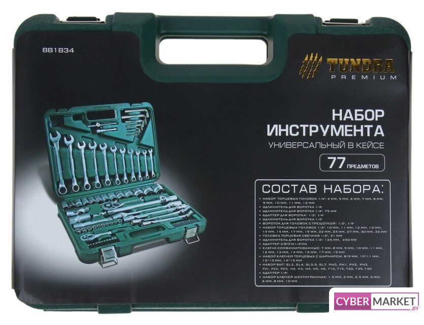 | Комплектация | - Набор торцевых головок 1/4": 4, 5, 6, 7, 8, 9, 10, 11, 12 мм- Удлинитель для воротка 1/4" 75 мм- Адаптер для воротка 1/4" и 1/2"- Вороток для головок с трещоткой 1/4" и 1/2"- Набор торцевых головок 1/2": 10, 11, 12, 13, 14, 15, 17, 19, 22, 24, 27, 30, 32 мм- Головка торцевая свечная 1/2": 21 мм- Удлинитель для воротка 1/2": 125 и 250 мм- Адаптер 3/8"(F)X1/2"(M)- Ключи комбинированные: 7, 8, 9, 10, 11, 12, 13, 14, 15, 17, 19 мм- Набор ключей торцевых с шарниром: 8х9 мм, 10х11 мм, 12х13 мм, 14х15 мм- Биты: SL3, 4, 5.5, 7, PH0, 1, 2, 3, PZ1, 2, 3, T10, 15, 20, 25, 30, H2, 3, 4, 5, 6- Адаптер 1/4"- Набор ключей шестигранных: 1.5, 2, 2.5, 5, 6, 8, 10 мм |
