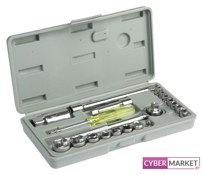 | Комплектация | Оснасткаголовки (15 шт.), удлинители (2 шт.), адаптер (1 шт.)Головкиторцевые (14 шт.), свечные (1 шт.)Торцевые головки3/8″ (10, 11, 12, 13, 14, 17, 19 мм), 1/4″ (4, 4.5, 5, 6, 7, 8, 9 мм)Удлинители3/8″ (75, 150 мм) |