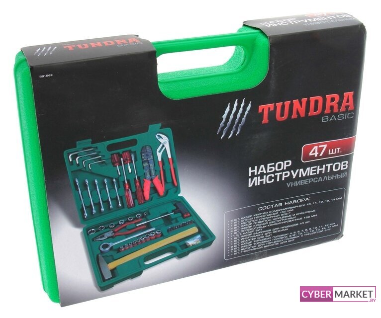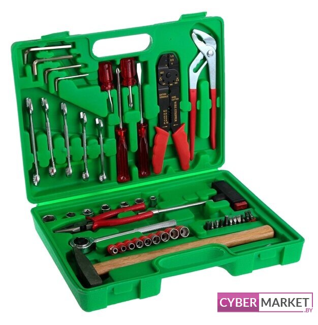 | Комплектация | - Набор ключей комбинированных, 5 шт.: 10, 11, 12, 13, 14 мм.- Клещи переставные 150 мм.- Молоток слесарный 300 гр.- Набор из 4 отвёрток шлицевых и крестовых.- Набор из 4 ключей шестигранных.- Плоскогубцы комбинированные 160 мм.- Набор из 11 бит.- Набор зажимов для проводов, 40 шт.- Инструмент для обжима.- Адаптер для бит.- Набор торцевых головок 3/8", 9 шт.: 4, 5, 6, 7, 8, 9, 10, 11, 12 мм.- Набор торцевых головок 3/8", 6 шт.: 10, 11, 12, 13, 14, 17 мм.- Вороток для торцевых головок с трещоткой 3/8".- Т-образный вороток для бит. |