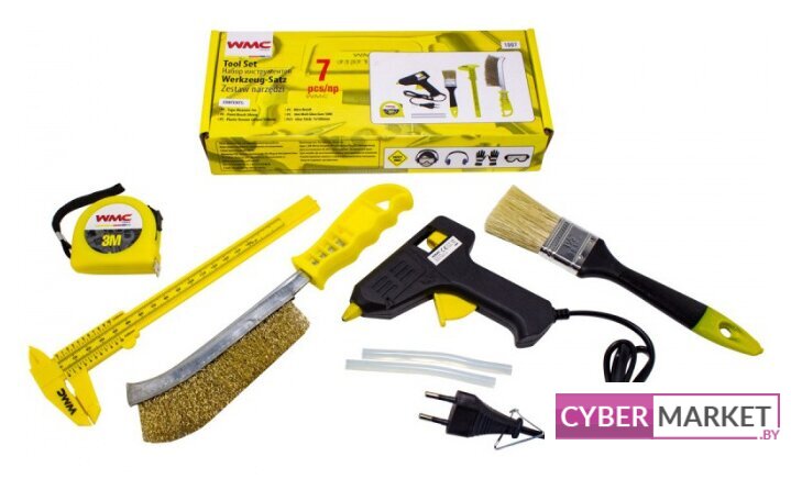 | Комплектация | клеевой пистолет, стержни дли пистолета, рулетка, кисточка, щетка по металлу, штангенциркуль |