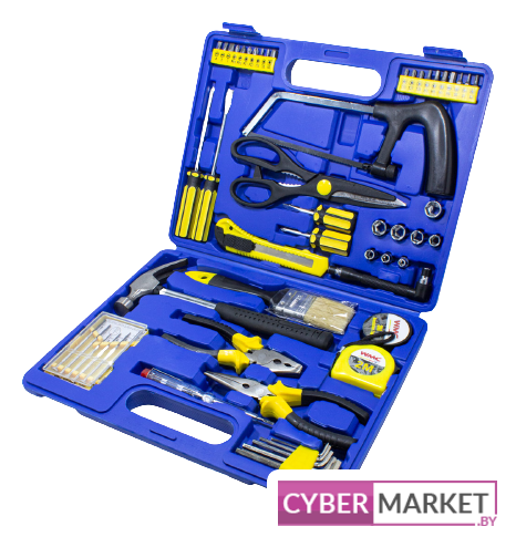 | Комплектация | 4шт. - Отвертки: SL5x38mm, SL6x100mm, PH1x38mm, PH2x100mm 1шт. - Ручная пила 1шт. Индикаторная отвертка 1шт. - Ножницы 8" 8шт. - 1/4"Головки: 5,6,7,8,9,10,11,12мм 1шт. - Универсальный нож 18 мм 1шт. - Рукоятка Г-образная 20шт. - Биты 1шт. - Молоток-гвоздодер 230г 1шт. - Пассатижи комбинированные 6" 1шт. - Утконосы 6" 1шт. - Рулетка 2м 1шт. - Изолента 5шт. - Ключи шестигранные: 2,3,4,5,6мм 6шт. - Отвертки для точных работ 1шт. - Кисть малярная 38мм Биты 25мм S: 0-1-2: SL:4.0-5.0-7.0мм PH:1-2 PZ:1- 2 Hex: H3-H4-H5-H6мм Torx: Т-15-T20-T25-T27-T30; AD-1шт |
