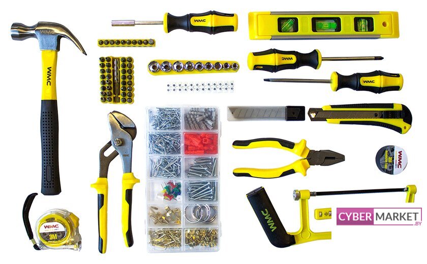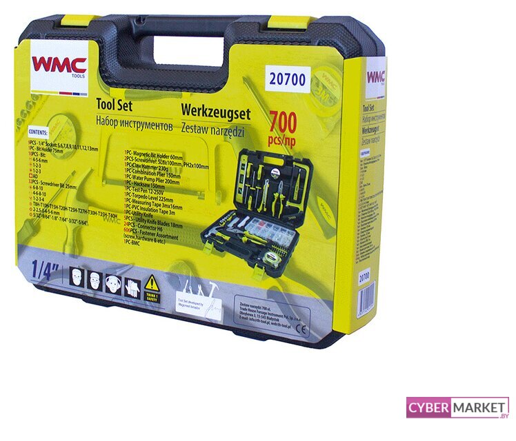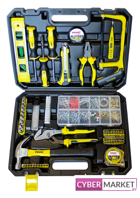 | Комплектация | 9шт. -1/4"Головки: 5,6,7,8,9,10,11,12,13 мм 1 шт. - Рукоятка-битодержатель 75 мм 10шт.-Биты: Шлиц 4-5-6 мм PH 1-2-3 PZ 1-2-3 АD 32шт.-Биты 25 мм: Шлиц Torq-set б-8-10 Головка под вилочный ключ 4-6-8-10 Шлиц Tri-Wing 1-2-3-4 Т8Н-Т10Н-Т15Н-Т20Н-Т25Н-Т27Н-ТЗОН-Т35Н-Т40Н Hex 2-2.5-3-4-5-6мм Hex 5/32"-9/64"-1/8"-7/64"-3/32"-5/64"1 шт. - Магнитный битодержатель 60 мм 2шт. - Отвертки: SL6x100 мм, РН2х100 мм 1 шт. - Молоток-гвоздодер 230гр. 1 шт. - Пассатижи комбинированные 150 мм 1 шт. - Пассатижи переставные 200 мм 1шт.-Ножовка 150 мм 1 шт. - Отвертка индикаторная 1шт.-Уровень 225 мм 1 шт. - Рулетка Змх16 мм 1шт.-Изолента ПВХ Зм 1 шт. - Нож универсальный 5шт.- Лезвия для ножа 18 мм 24шт. - Клеммы соединительные Н6 606шт. - Набор крепежа (саморезы, дюбеля и др.)1 шт. - Пластиковый кейс |