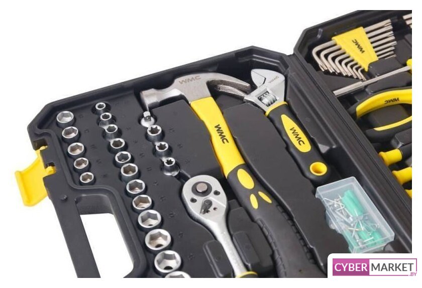 | Комплектация | Посадочный квадрат: 3/8”, 1/4";12шт. – 1/4"" Головки: 4, 4.5, 5, 5.5, 6, 7, 8, 9, 10, 11, 12, 13 мм;15шт. – 3/8"" Головки: 6, 7, 8, 9, 10, 11, 12, 13, 14, 15, 16, 17, 19, 20, 21 мм;3шт. – 3/8 Головки Е-профиль: 8, 10, 12 мм;1шт. – 3/8 Трещотка реверсивная;1шт - 3/8"" Удлинитель 3”;1шт. - Адаптер 1/4"" X 3/8"";5шт. – Ключи комбинированные: 10, 12, 13, 14, 15мм;1шт. - Рулетка 3м x 16мм;1шт. – Молоток-гвоздодер 430г;20шт. – Биты (с адаптером-переходником под головки):- SL 3-4-5-6-7 мм- PH 0-1-2-3- T 10-15-20-25-30- PZ 1-2- S 1-2-3, AD1шт. – Рукоятка с магнитным битодержателем;16шт – Набор ключей Г-образных: HEX 1.5-2-2.5-3-4-5-5.5-6 мм, TORX Т9-Т10-Т15-Т20-Т25-Т27-Т30-Т40;6шт. – Отвертки для ювелирных работ: SL 1-2-3мм, PH 0-1-2;1шт. – Утконосы 6"";1шт. – Ключ разводной 8"";42шт. - Набор крепежа (саморезы, дюбели, и пр.);1шт. – Пластиковый кейс. |