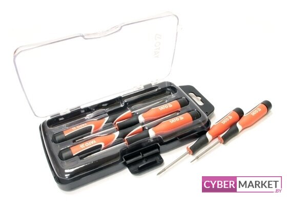 | Комплектация | - Отвертки с плоским шлицем (1.4х50 мм, 2.0х50 мм,2.4х50 мм) - 3шт- Отвертки типа PHILIPS (PH00x50 мм, PH0x50 мм, PH01x50 мм) - 3шт |
