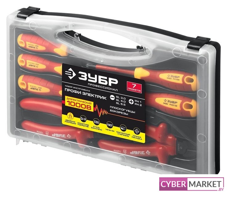 | Комплектация | - Отвертка SL3 x 75 мм 1 шт.- Отвертка SL4 x 100 мм 1 шт.- Отвертка SL5.5 x 125 мм 1 шт.- Отвертка PH1 x 80 мм 1 шт.- Отвертка PH2 x 100 мм 1 шт- Плоскогубцы комбинированные, 180 мм 1 шт.- Бокорезы, 160 мм 1 шт.- Бокс пластиковый 1 шт |