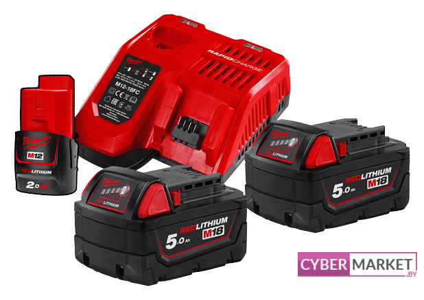 | Комплектация | - Аккумулятор M18 B5 - 2 шт- Аккумулятор M12 B2 - 1 шт- Зарядное устройство M12-18FC - Документация |