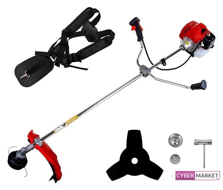 бензиновый, оснастка: леска+металлический диск, ширина скашивания 25.5-42 см, вес 7.3 кг