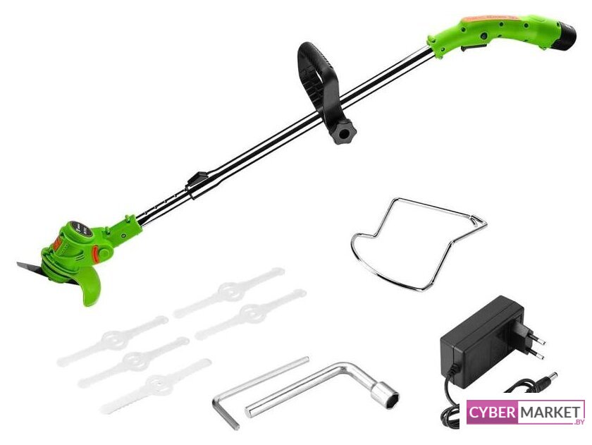 аккумуляторный, оснастка: пластиковый нож, ширина скашивания 24 см, вес 1.2 кг