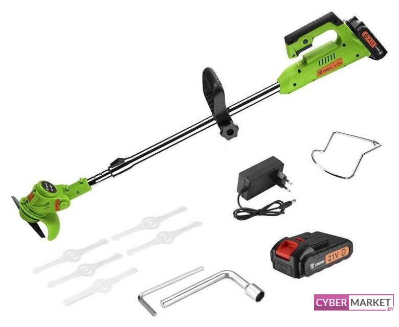 аккумуляторный, 650 Вт, оснастка: металлический нож+металлический диск+пластиковый нож, ширина скашивания 15 см, вес 1.8 кг