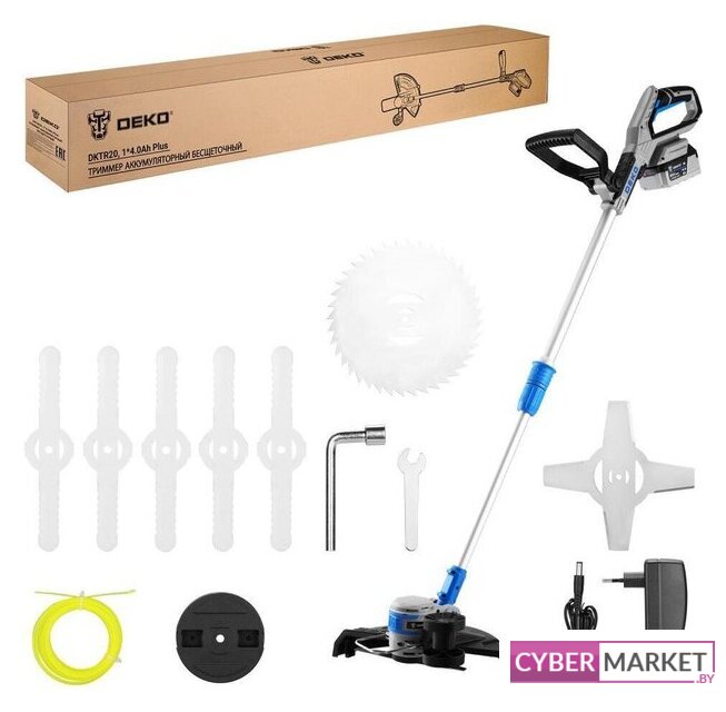 | Комплектация | - Триммер - 1 шт.- Аккумулятор 4.0 Ач - 1 шт.- Быстрое зарядное устройство - 1 шт.- Металлический нож - 1 шт.- Режущий диск - 1 шт.- Пластиковые ножи - 5 шт.- Комплект лески - 1 комплект- Ключ - 2 шт.- Крепежный комплект - 1 шт.- Руководство по эксплуатации- Коробка |