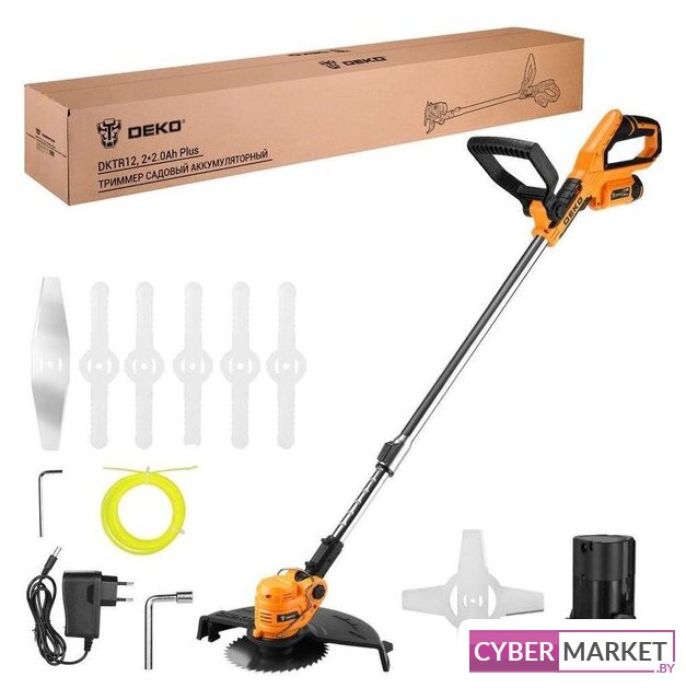 | Комплектация | - Триммер - 1 шт.- Аккумулятор 2,0 Ач - 2 шт.- Зарядное устройство - 1 шт.- Пластиковые ножи - 5 шт.- Металлический нож - 1 шт.- Металлический нож 4Т - 1 шт.- Металлический диск - 1 шт.- Леска - 1 шт.- Шестигранный ключ - 1 шт.- Торцевой ключ с внутренним шестигранником - 1 шт- Дополнительная рукоятка - 1 шт.- Защитный кожух - 1 шт.- Инструкция- Коробка |