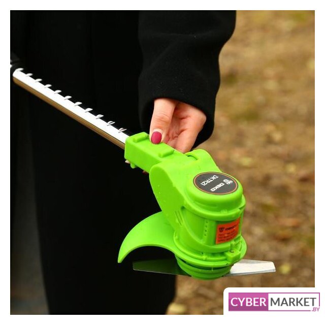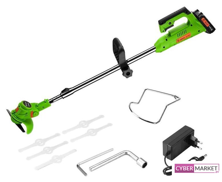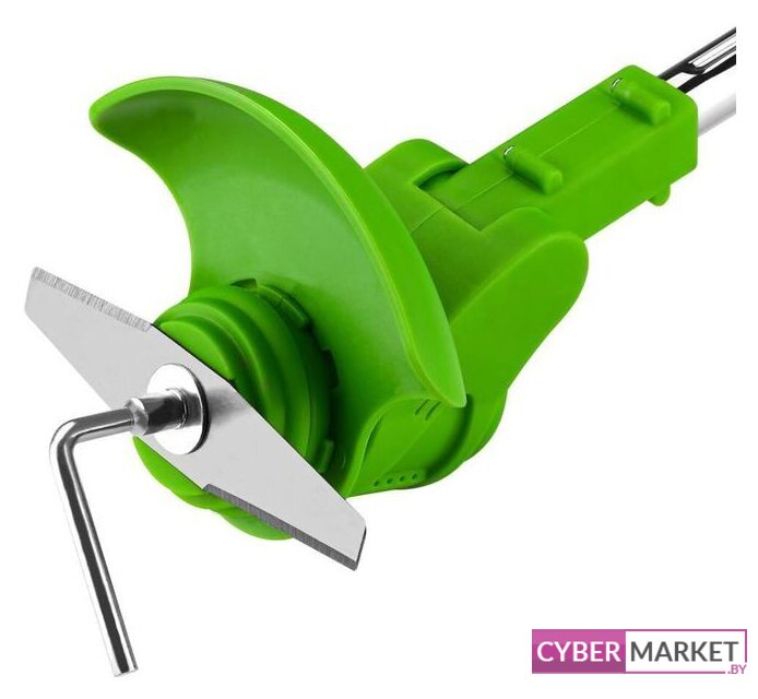 аккумуляторный, 300 Вт, оснастка: металлический нож+пластиковый нож, ширина скашивания 14 см