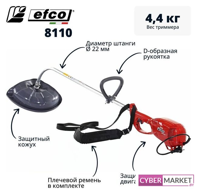 бензиновый, двухтактный, 2100 Вт, оснастка: леска+металлический нож, ширина скашивания: 25.5-44 см