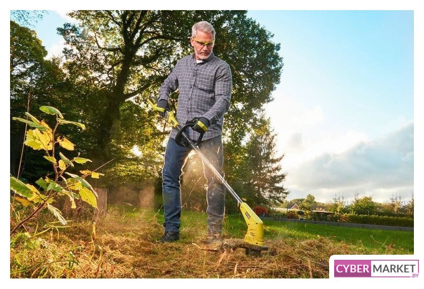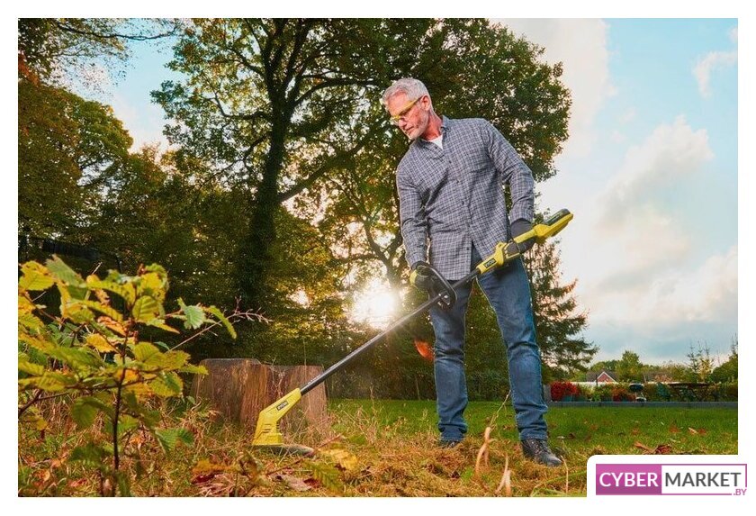 аккумуляторный, оснастка: леска+пластиковый нож, ширина скашивания: 23 см, 18 В, аккумулятор в комплекте, 1.8 кг